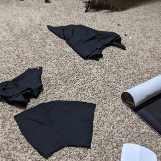 Head piece: Made from Dark green knit fabric sewn from a 30 inch by 4 inch rectangle. I then cut out the head dress pieces from 4mm craft foam. Glued down with contact cement, and prepared with black plastidip. I then painted a light layer of gold airbrush paint over it and once that was dry, painted a lighter layer of gold acrylic paint over it. It was then sealed with matte Mod Podge. The foam was attached to the headband with e6000. I attached hand woven strands of embroidery floss which had pre-made golden tassels to the end.